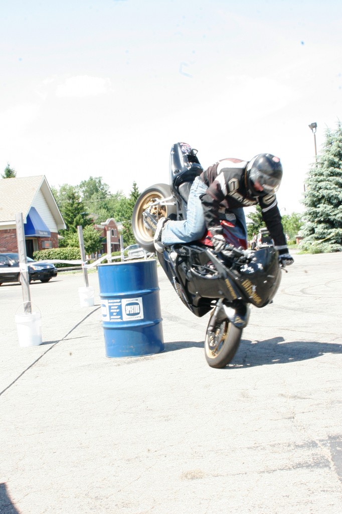 On Saturday, June 27th, Josh Borne returned to the regal town of Belville, Michigan for a motorcycle extravaganza at Champion Powersports. This one day event was sponsored by Coast to Coast Powersports. Spectators watched as the youngest stunt riders, Colin and Craig Farmer, impressed the crowd with flawless circles and combo wheelies. Outside of the dealership, motorcycle enthusiasts tried their luck on the Dyno Machine, while inside store patrons were cleaning house with parts, accessories and apparel sales!